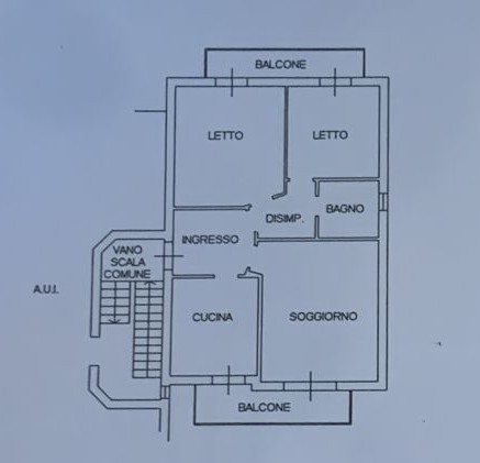 Composto da: ingresso, soggiorno, cucina abitabile, disimpegno notte, 2 camere da letto, bagno, balconi